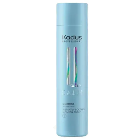 Kadus C.A.L.M champô, faz parte de uma linha de cuidados capilares que acalma instantaneamente o couro cabeludo durante e após os serviços de coloração no salão, especialmente o couro cabeludo sensível ou seco.