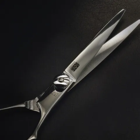 Forjada em aço VG-10W de alto carbono, esta tesoura de cortar cabelo possui lâminas convexas e ocas, polidas com um fino polimento espelhado, perfeitamente equilibradas para conseguir um corte perfeito sem esforço.