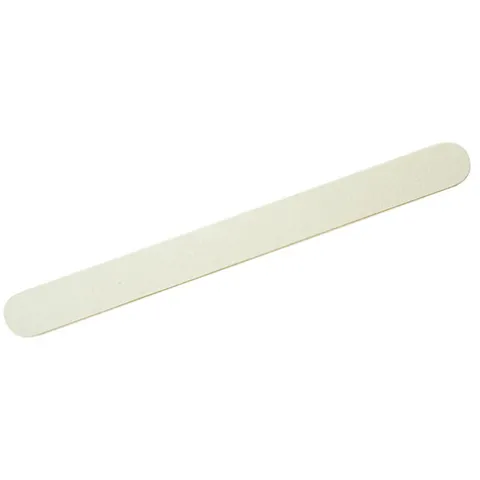 Lima branca acolchoada, com um grão mais fino de um lado (180) e mais grosso do outro (100). Tem um formato reto para ajudar a acertar os contornos das unhas naturais, de gel ou acrílicas.