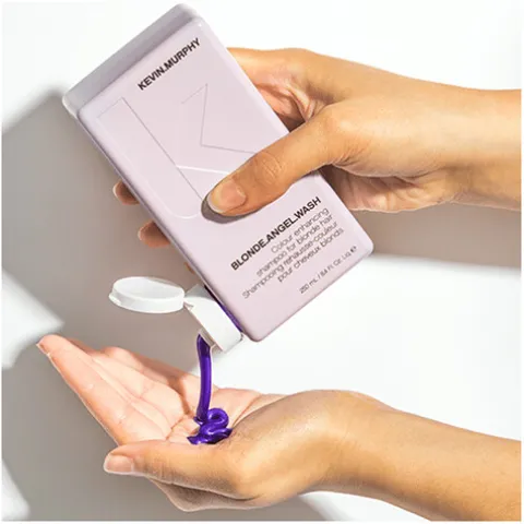 Um champô de lavanda, com um pigmento que realça a cor para manter aquele louro “acabado de sair do salão”.