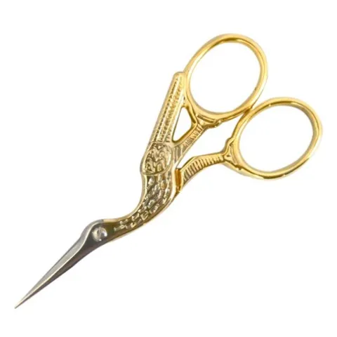 Tesoura cegonha em aço inoxidável, possui o tamanho e a ponta estreita e afiada, ideais para o corte ou para qualquer outro tipo de acabamento que exija mais precisão.