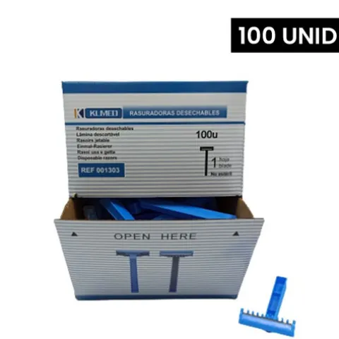 Lâminas descartáveis, utilizadas para depilar/ rapar pelos compridos. A sua pega é composta por polistireno e possui tampa protetora de plástico para evitar acidentes ou danos à lâmina.