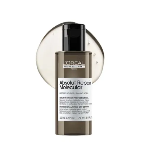 Shampoo Molecular Absolut Repair – Com uma fórmula patenteada que combina Peptides Bonder + 5 aminoácidos, este shampoo sem sulfatos transforma-se numa espuma rica que limpa delicadamente, desembaraça e prepara o cabelo para os tratamentos seguintes. Nutre em profundidade, melhora a elasticidade e dá movimento ao cabelo desde a primeira utilização.