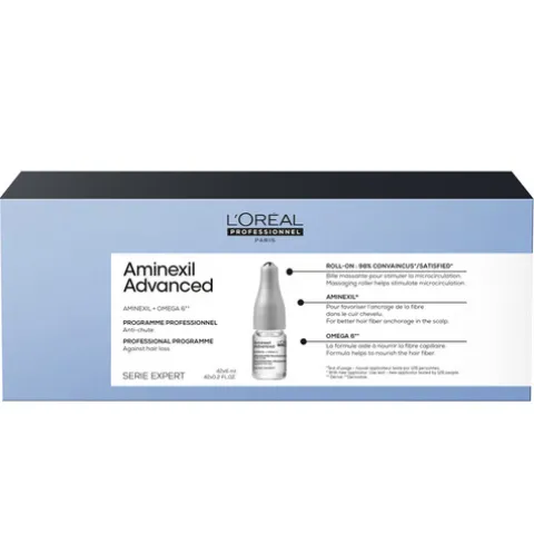 O programa Aminexil Advanced Serie Expert para cabelos finos é um tratamento do couro cabeludo para estimular a atividade da raiz dos cabelos. A molécula Aminexil, um ingrediente único que reduz a perda de cabelo, pode prolongar a vida de até 8000 fios e evitar que entrem precocemente na fase de queda. À medida que massaja o couro cabeludo com o conteúdo da ampola, são fornecidos nutrientes essenciais que ajudam a estimular o folículo e a proteger a densidade dos fios, desde a raiz até às pontas.