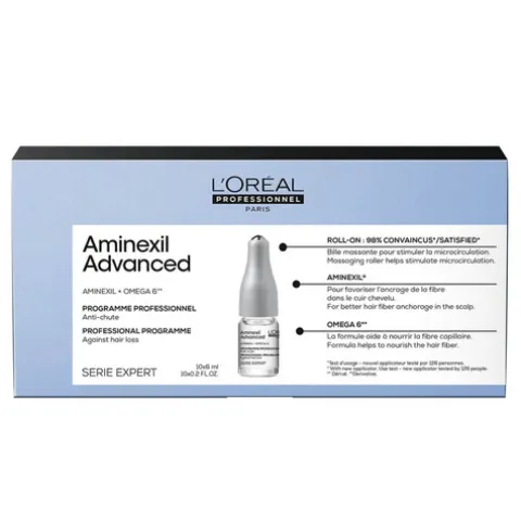 O programa Aminexil Advanced Serie Expert para cabelos finos é um tratamento do couro cabeludo para estimular a atividade da raiz dos cabelos. A molécula Aminexil, um ingrediente único que reduz a perda de cabelo, pode prolongar a vida de até 8000 fios e evitar que entrem precocemente na fase de queda. À medida que massaja o couro cabeludo com o conteúdo da ampola, são fornecidos nutrientes essenciais que ajudam a estimular o folículo e a proteger a densidade dos fios, desde a raiz até às pontas.
