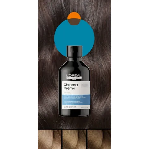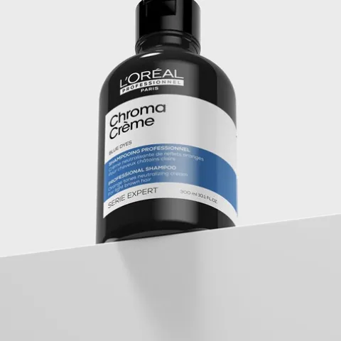 O L’Oréal Pro Serie Expert Chroma Crème Blue é o champô neutralizante ideal para cabelos castanhos a castanhos claros que necessitam de correção instantânea e cuidados profissionais.