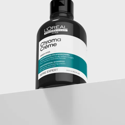 O L’Oréal Pro Serie Expert Chroma Crème Green é um champô neutralizante de alta performance, criado especificamente para cabelos castanhos escuros a pretos.
