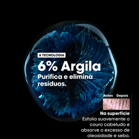 A sua fórmula enriquecida com 6% de argila, limpa como um champô e atua como uma máscara para remover os resíduos, suor e oleosidade da superfície do couro cabeludo, deixando o cabelo leve e com mais volume.