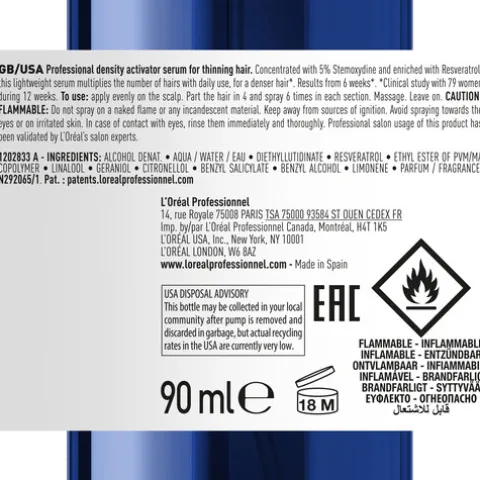 A sua fórmula inovadora é enriquecida com 5% de Stemoxydine e Resveratrol, dois ingredientes ativos que funcionam como verdadeiros ativadores de densidade, especificamente formulados para combater a queda de cabelo e fortalecer os fios frágeis.