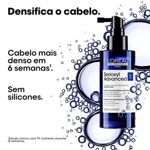 O sérum ativador de densidade capilar Serioxyl Advanced foi especialmente desenvolvido para quem tem cabelo fino e procura uma solução eficaz para aumentar a densidade capilar.