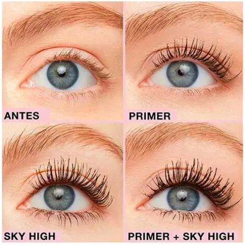 Ao ser utilizado em conjunto com as máscaras de pestanas Sky High, este primer eleva o seu impacto, proporcionando um efeito ainda mais intenso e marcante.