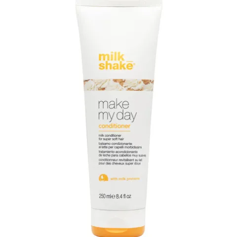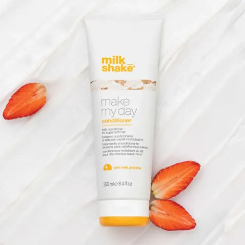 O condicionador Milk Shake Make My Day apresenta uma textura cremosa e um perfume delicioso que desembaraça e suaviza os cabelos sem os deixar pesados.