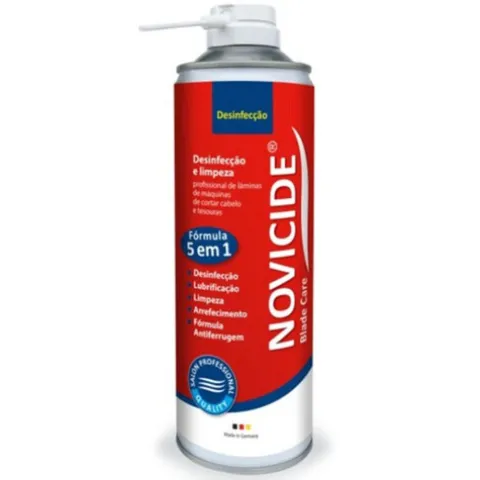 Novicide Blade Care 5 em 1 é a solução completa para máquinas de cortar cabelo e tesouras de metal.
