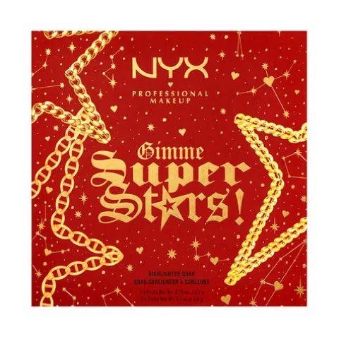 ATENÇÃO: esta paleta é apenas para Super Stars! Torne a sua pele a estrela da noite com esta paleta de 4 tons cromáticos, multidimensionais em dourado, rosa dourado, rosa e azul. Use o tom dourado e rosa dourado para um look mais neutro e o rosa e o azul para um look mais artístico.
