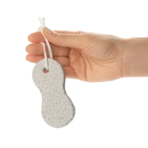 A pedra-pomes é uma rocha vulcânica com propriedades esfoliantes, usada normalmente para suavizar a pele, eliminando de forma eficaz as células mortas cutâneas e o excesso de pele seca nos pés ou nos cotovelos.
