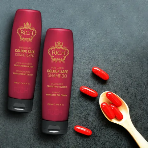 A fórmula de Rich Condicionador Protetor da Cor com óleo de argan, ácido hialurónico e biotina é ideal para cabelos secos e com coloração. Protege e prolonga a cor enquanto hidrata e fortalece o seu cabelo. Em particular o óleo de argan é rico em vitamina E, que protege o fio das agressões causadas pelas radiações UV e fontes de calor.