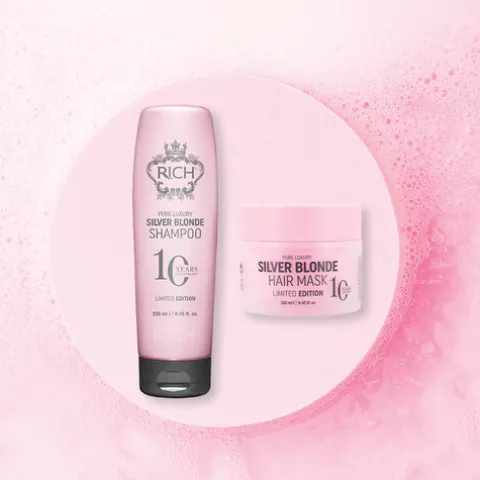 Numa edição limitada, a Rich apresenta o seu champô para cabelos loiros, que permite uma limpeza suave e eficaz.