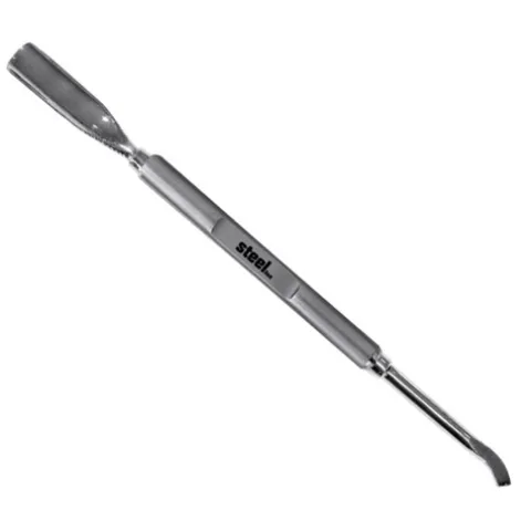 Em inox de alta qualidade e design ergonómico, este empurrador de cutículas é ideal para profissionais. Com a sua ponta precisa e suave, este instrumento segue perfeitamente a forma natural da unha, permitindo um empurrar suave e eficaz das cutículas.