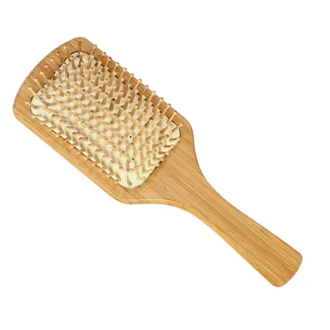 Escova de Cabelo Pneumática Retangular Larga de Bamboo, uma inovação eco-friendly para o seu cuidado capilar.