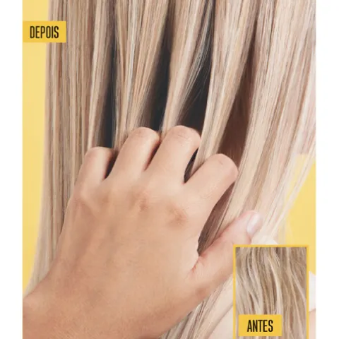 Modo de usar: aplicar a quantidade do tamanho de uma ameixa, entre 25-30 g, em cabelo limpo e húmido. Enxaguar abundantemente após 5 minutos.
