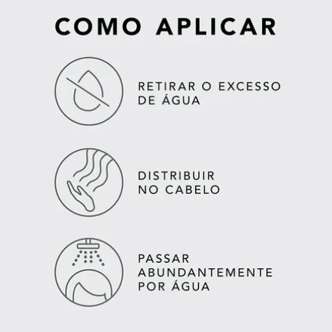 Modo de usar: Retirar o excesso de água do cabelo. Saturar uniformemente no cabelo, insistindo nas zonas mais danificadas. Deixar atuar durante 2 a 3 minutos e, em seguida, passar abundantemente por água.