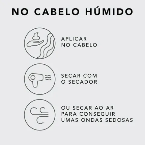Um tratamento leave in, que pode ser usado em cabelos secos ou húmidos e que nutre e molda os fios, dando uma fixação suave em todos os tipos de cabelo, incluindo cabelo liso, ondulado e crespo. Perfeito para usá-lo como cuidado condicionador e produto de styling.