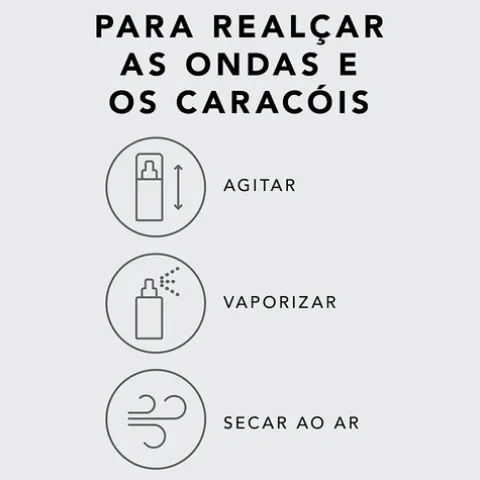 Modo de usar: Agitar bem para ativar a fórmula bifásica. Vaporizar no cabelo húmido. Secar com o secador para dar um maior corpo ao cabelo ou deixar secar ao ar para realçar o movimento das ondas e dos caracóis.