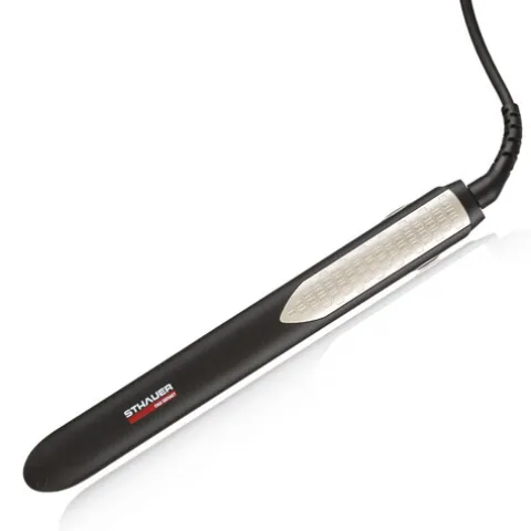 Uma prancha de cabelo profissional, com placas de cerâmica turmalina extra longas e flutuantes, dotadas de resistência cerâmica MCH que permite atingir a temperatura máxima 230º em apenas 30 segundos.
