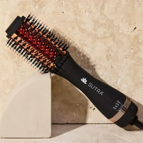 A escova de cabelo elétrica Sutra Infrared Ionic 2″ Blow Out é ideal para criar penteados profissionais em casa, uma vez que combina o potente fluxo de ar de um secador de cabelo com os benefícios de volume de uma escova oval grande.