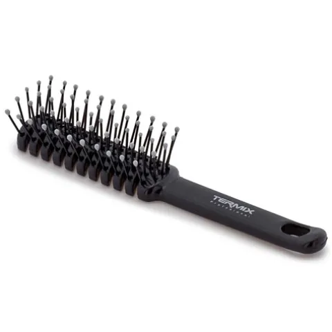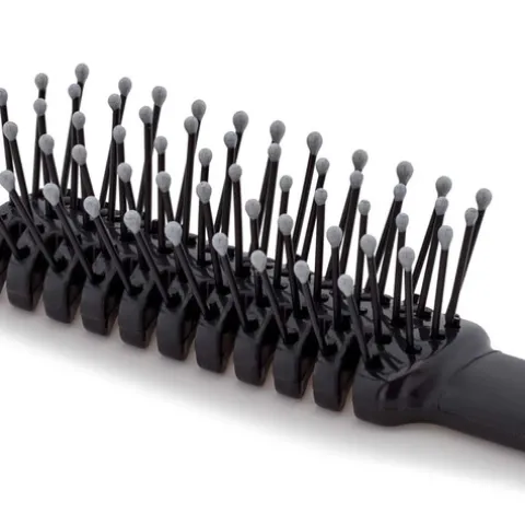 Uma escova muito leve que possui cerdas de fibra de nylon com um acabamento arredondado, que protegem o couro cabeludo e oferecem uma escovagem suave.