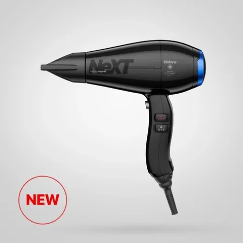 Projetado para uso prolongado, o secador de cabelo profissional NEXT PRO DIGITAL possui um design leve e ergonómico que reduz o cansaço das mãos e dos braços.