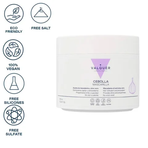 Modo de usar: Aplicar nos cabelos recém-lavados e secos com toalha. Deixar atuar por 3 a 5 minutos. Massajar e proceder ao desalfandegamento durante o tempo de exposição. Por fim, enxague abundantemente com água. Para melhores resultados lavar com Valquer Cebolla Shampoo Revitalizante. Não aplicar no couro cabeludo.