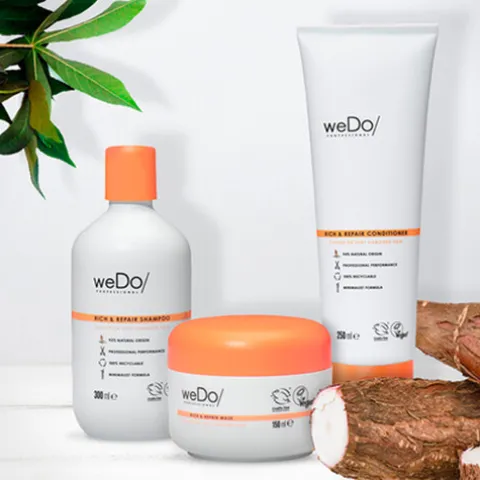 WeDo/Professional Rich & Repair é um produto eco-ético, sem crueldade animal e sem silicones, apresentada num frasco de plástico reciclável fabricado com 50% de materiais reciclados.